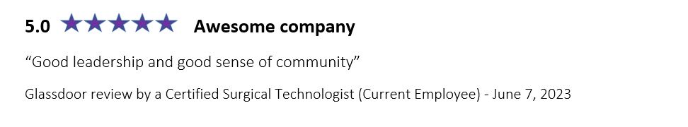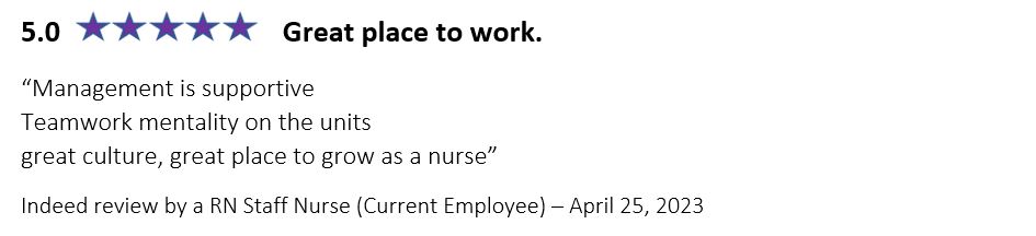• High Reliability organization with multiple opportunities for front line staff to participate in committees focused on quality improvement and patient safety initiatives